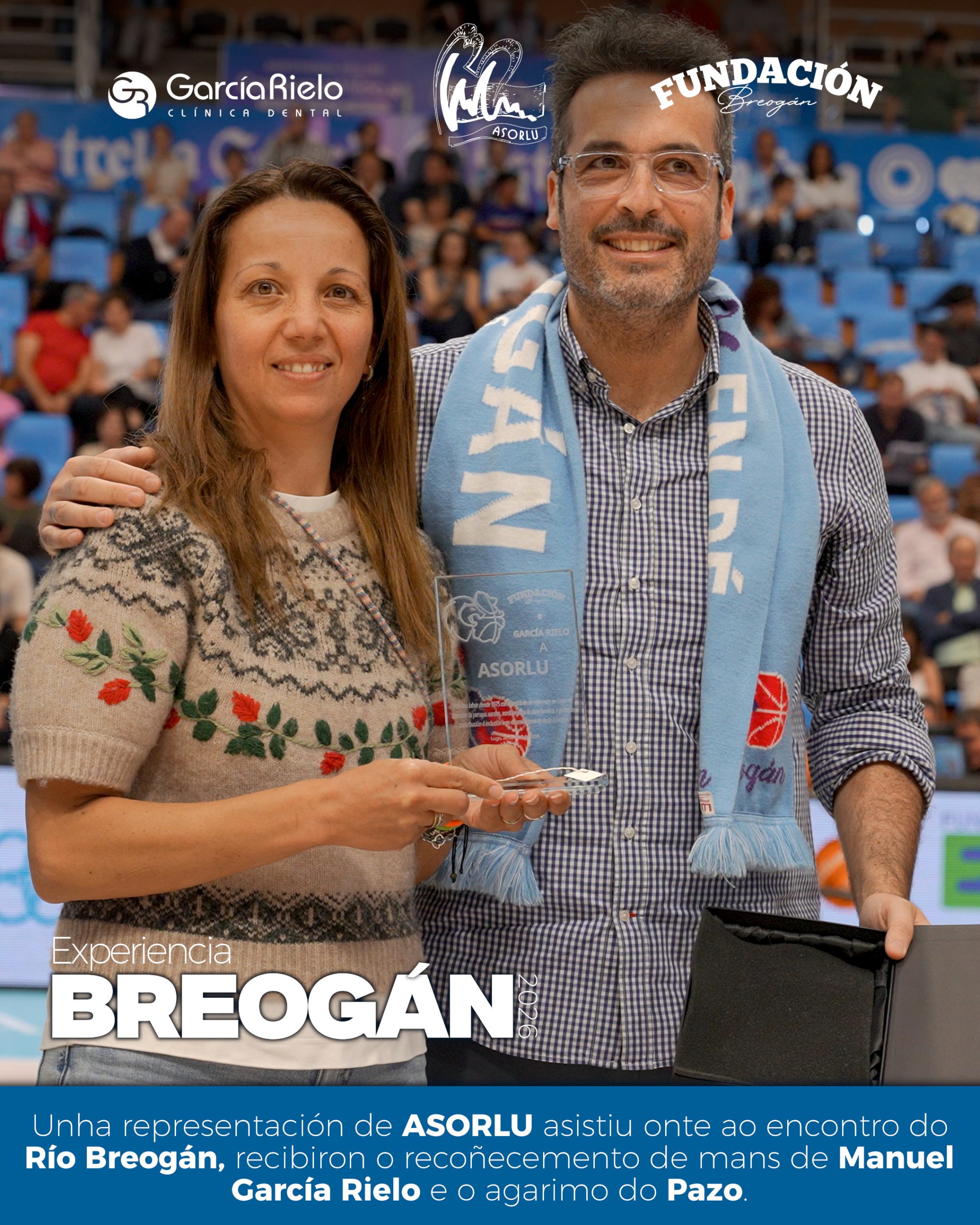 Ademais, nun dos descansos do partido, Mónica Lourés, Vicepresidenta de ASORLU recolleu un pequeno recoñecemento ao labor da asociación de mans de Manuel García Rielo.